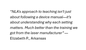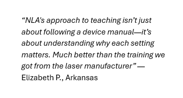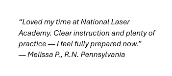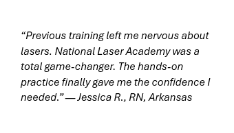 Unlike many short demonstration-style courses, National Laser Academy focuses on developing knowledgeable, safety-focused laser practitioners through science-based education and hands-on training.