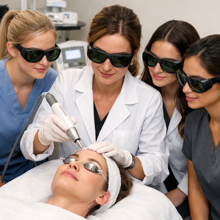 Participants complete Laser Safety Officer training covering laser hazards, safety protocols, and responsible operation of energy-based devices in clinical environments.